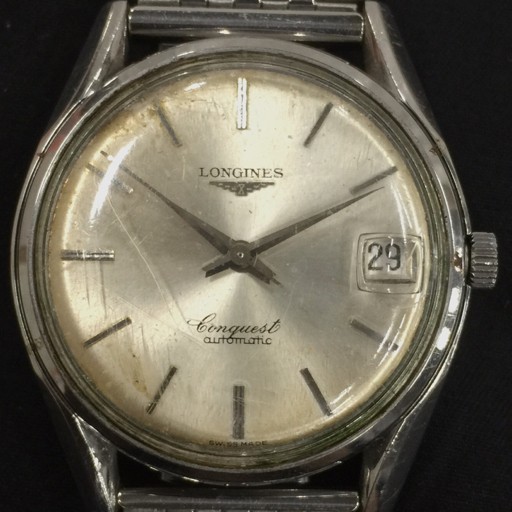 > ロンジン コンクエスト デイト 自動巻き オートマチック 腕時計 メンズ 稼働品 シルバーカラー文字盤 社外ブレス
