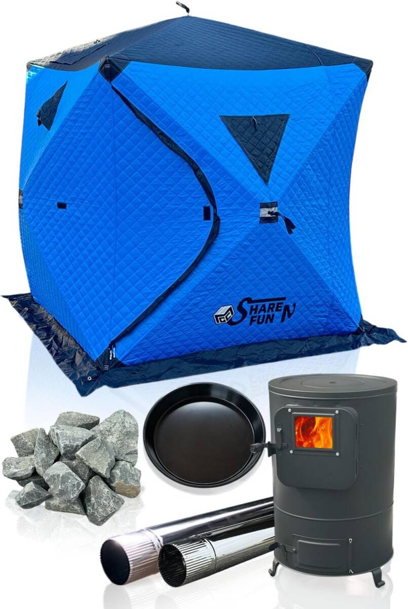 - サウナテント ブルー テントサウナ スタートセット 4人用 ロウリュができる すぐ使える 幅240m×奥行240cm×高さ210cm 薪ストーブ