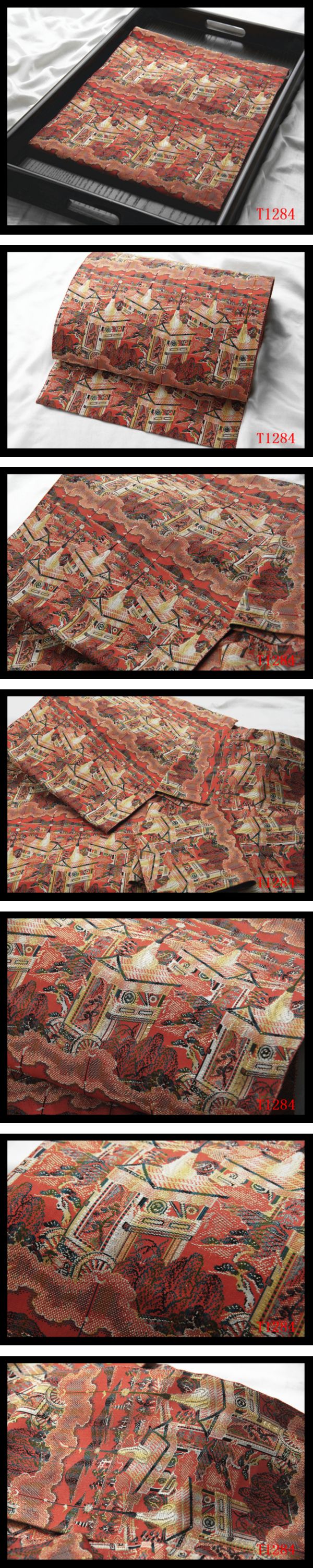 - 蔵【T1284】厳選美品 祇園祭 赤丹色地 気品豊かに 正絹高級美術名古屋帯 ◇検簪着物袋帯和装小物帯締め