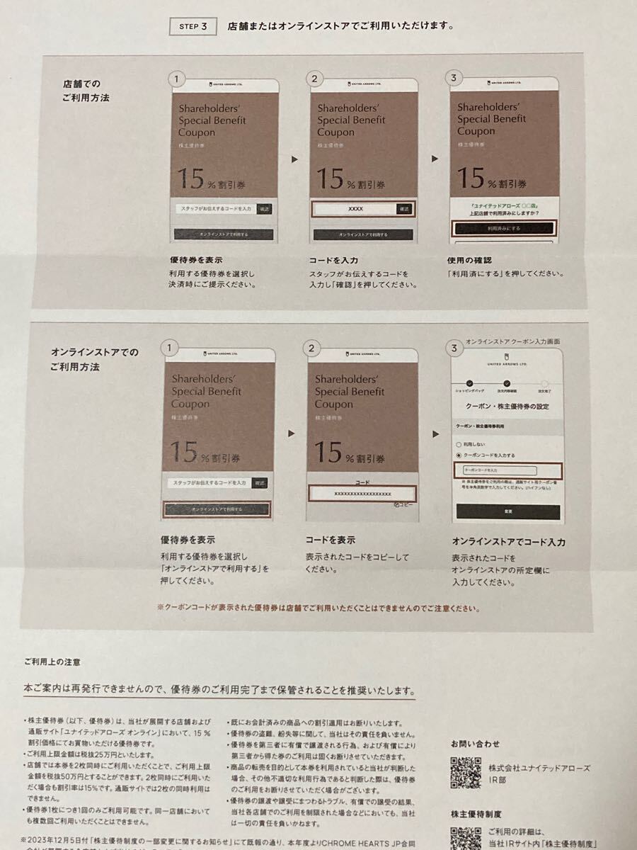 - 株主優待券 ユナイテッドアローズ 15%割引券 UNITED ARROWS