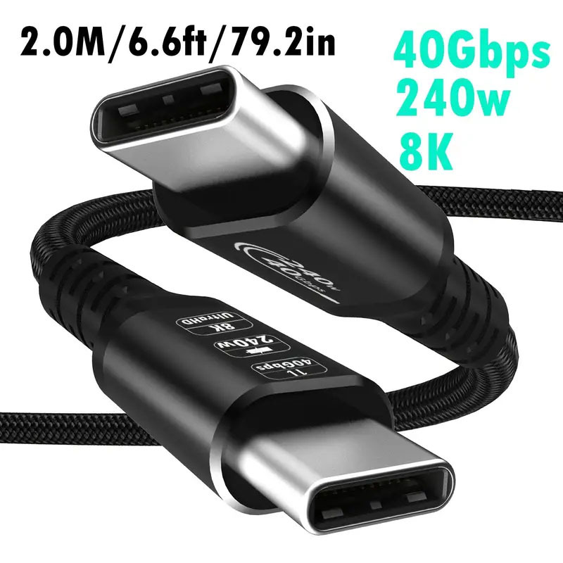 > 【新同品】USB4 超高速40Gbps USB-C 2mケーブル(240W PD3.1充電、耐久性ナイロン編み込み、高EMIシールド)