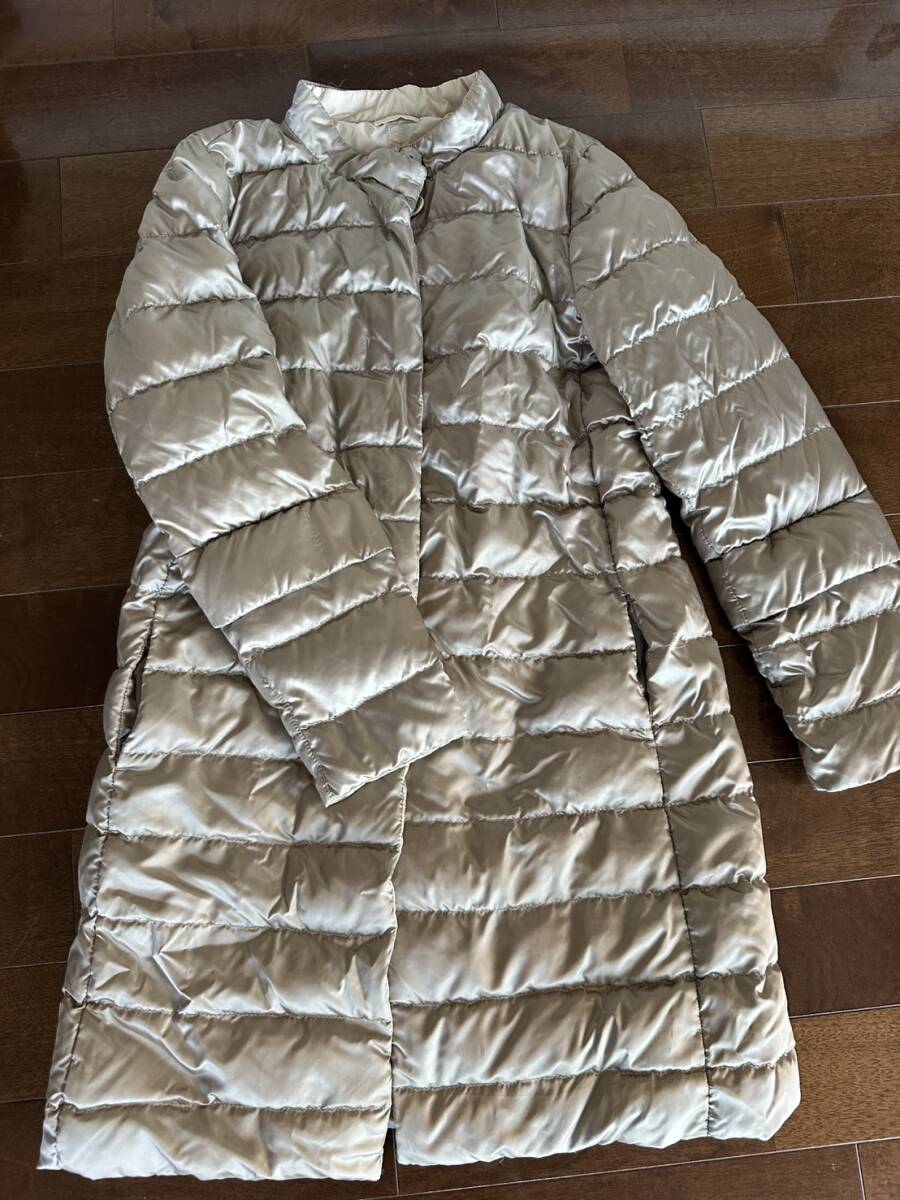 - マックスマーラ maxmara ダウンコート グレージュ&ホワイト リバーシブル 袖着脱 フード・ベルト等小物付き
