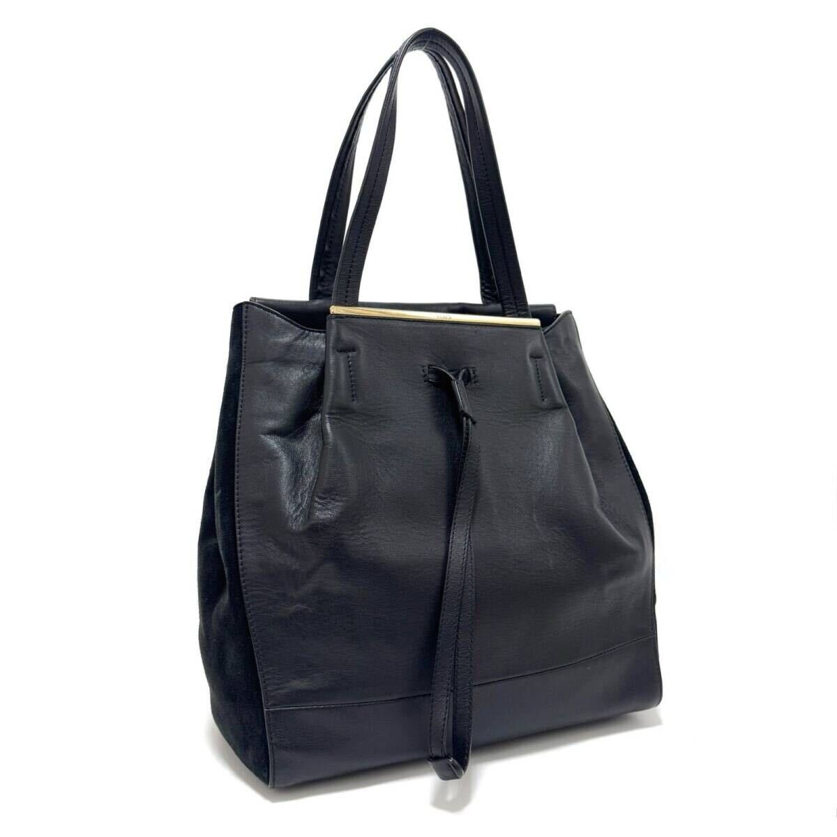 - フルラ トートバッグ ハンドバッグ ビジネスバッグ 肩掛け 鞄 ブラック 黒 ゴールド レザー 革 スエード スウェード A4 FURLA