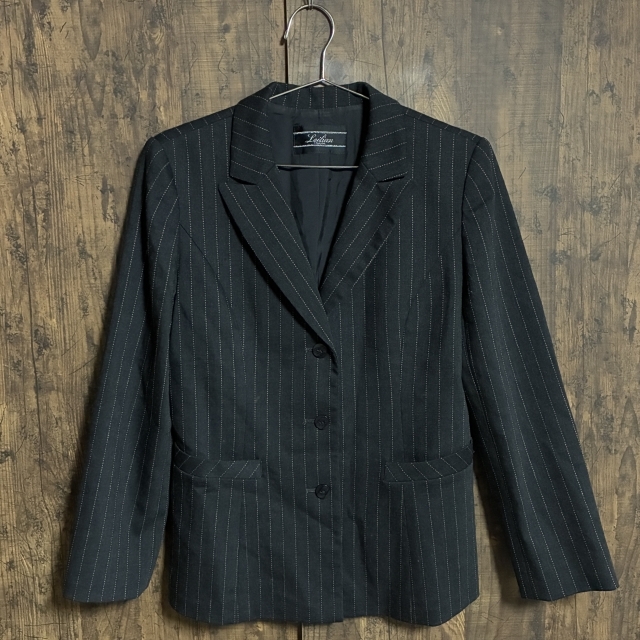 - C44◇Leilian | レリアン ストライプ テーラードジャケット チャコールグレー×ブラウン レディース 9サイズ 中古品