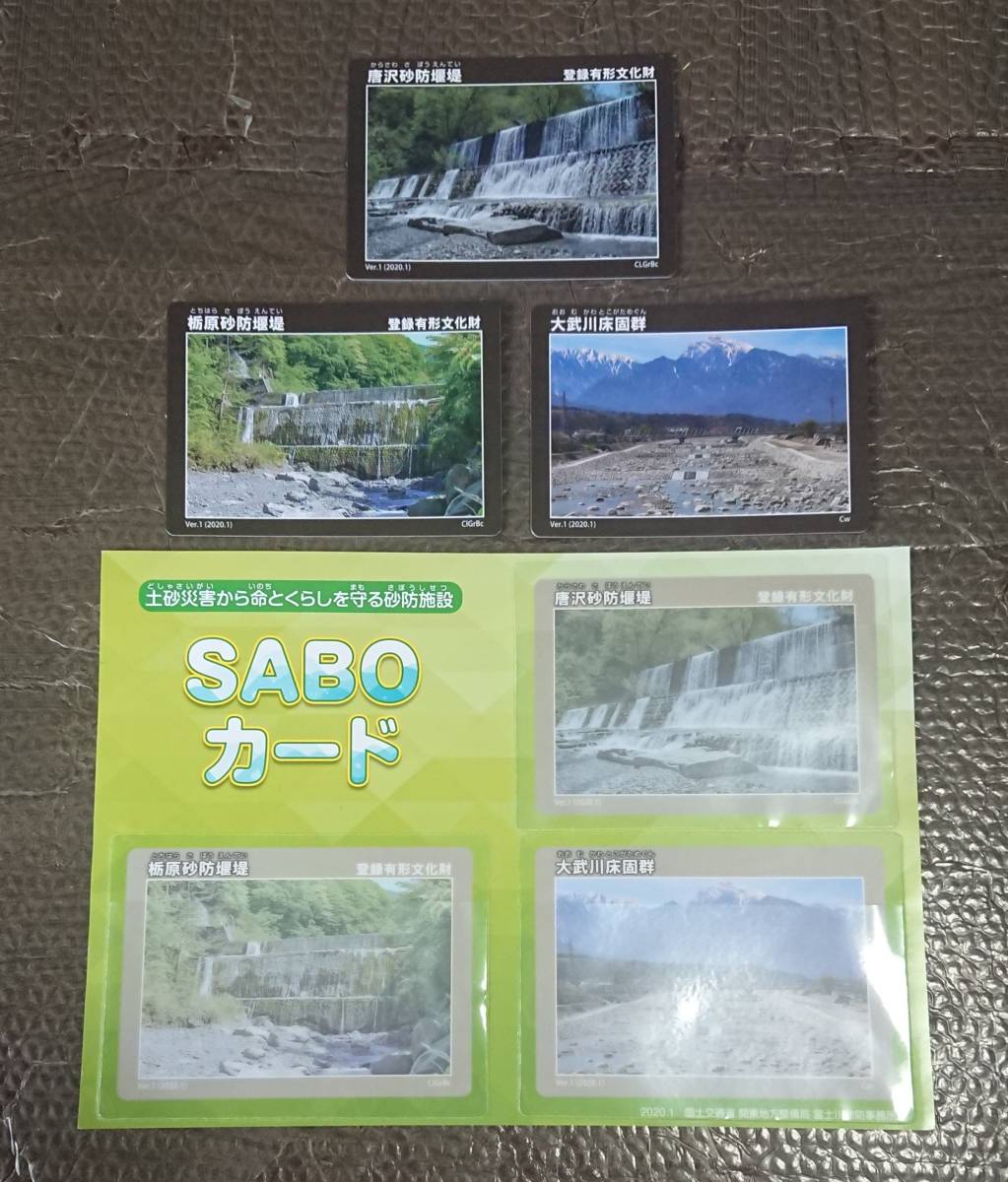 - 山梨県 砂防ダムカード SABOカード 3種コンプセット 台紙付き 唐沢砂防堰堤 栃原唐沢砂防堰堤 大武川床固群