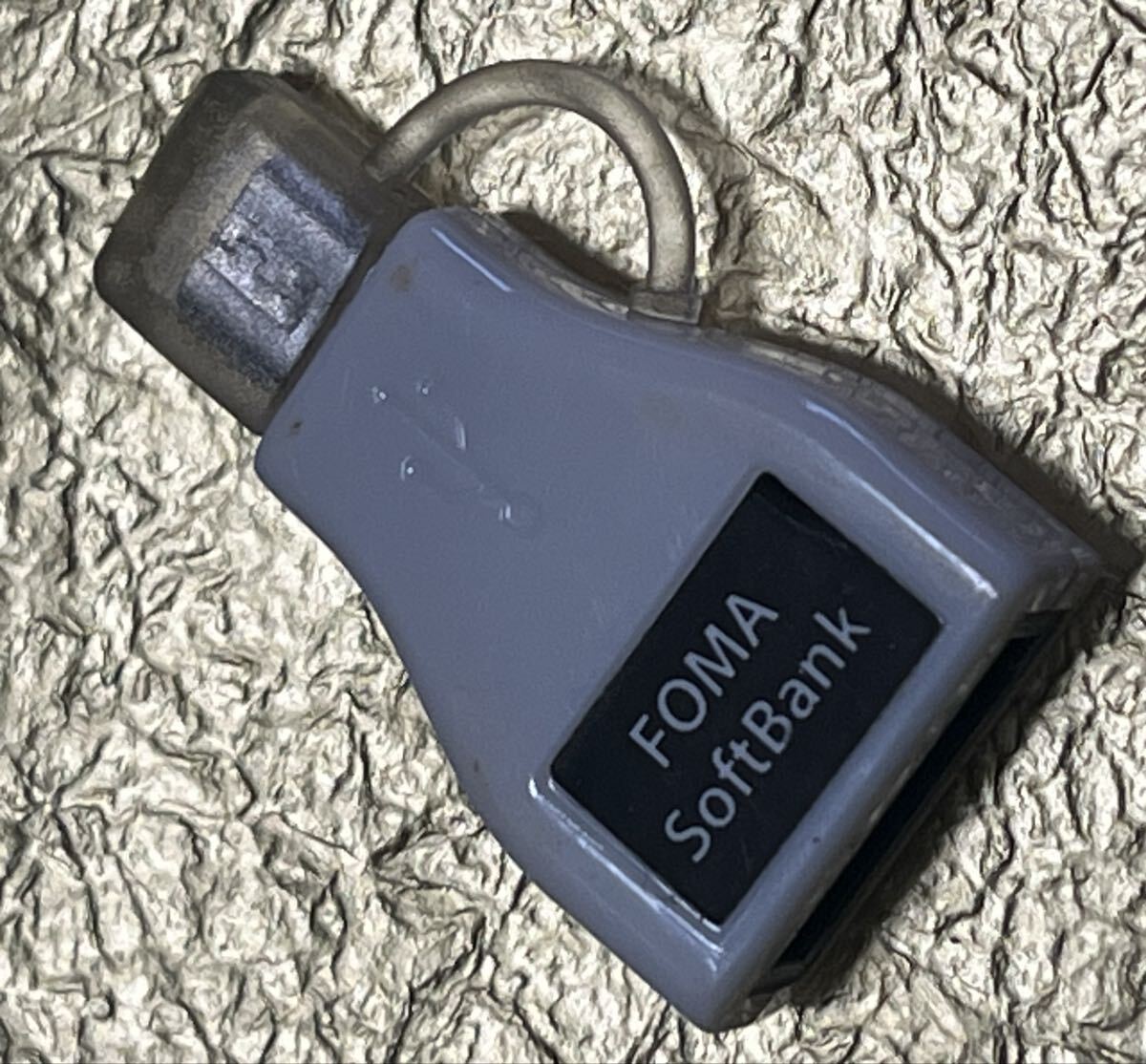 - 携帯電話の通信規格である「FOMA」と「SoftBank」のロゴが記載された、USB接続型のデータ通信端末です。