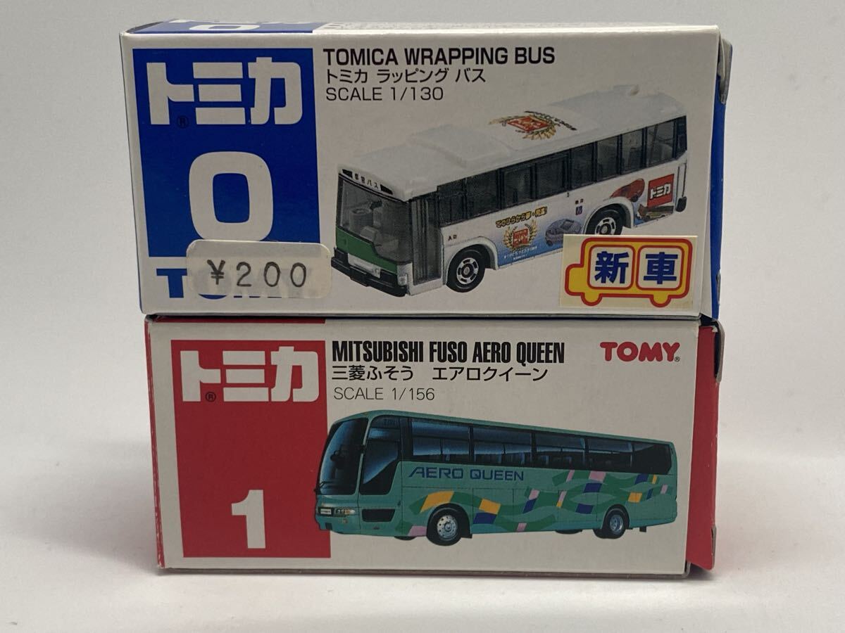 - 訳有りトミカ 赤箱0 ラッピングバスと赤箱1 三菱ふそう エアロクイーン 外ミミ切り取り済み