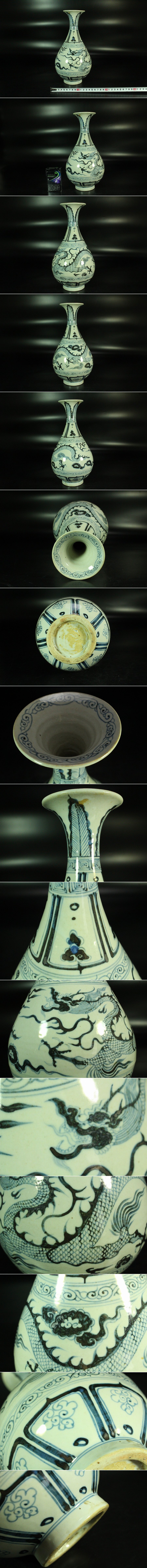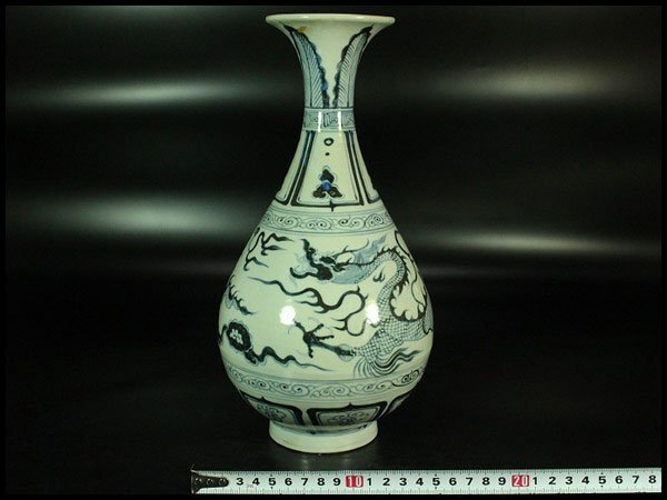 - 【金閣】中国美術 青花霊芝雲龍紋 瓶 旧家蔵出 送料無料(A860)