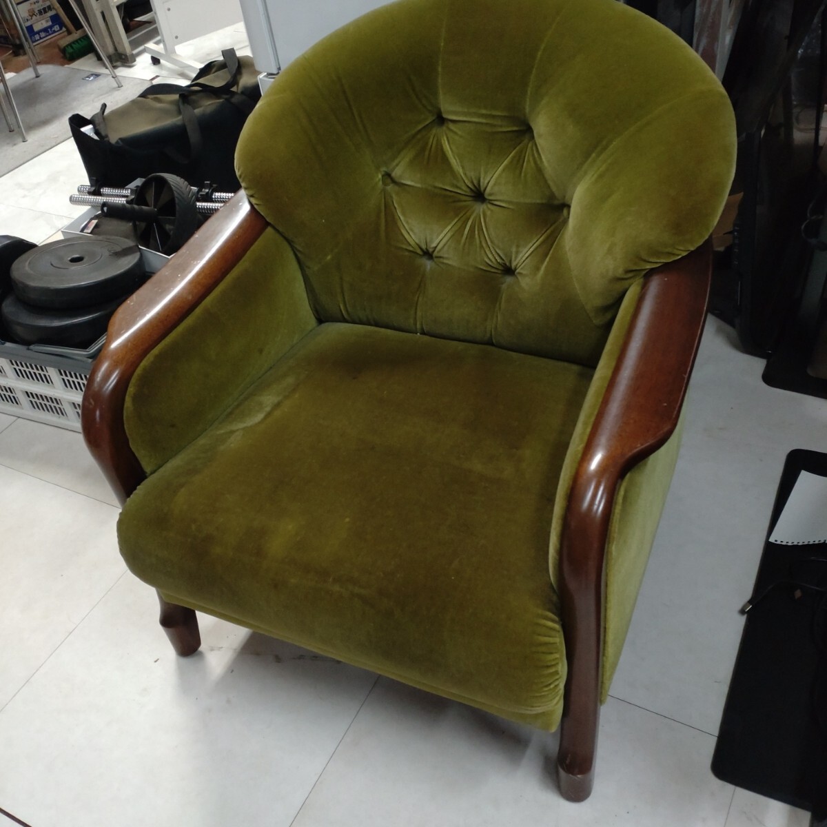 - 【店頭渡し推奨】シングルソファー グリーン 重厚 レトロ 中古 現状渡し 1シーター