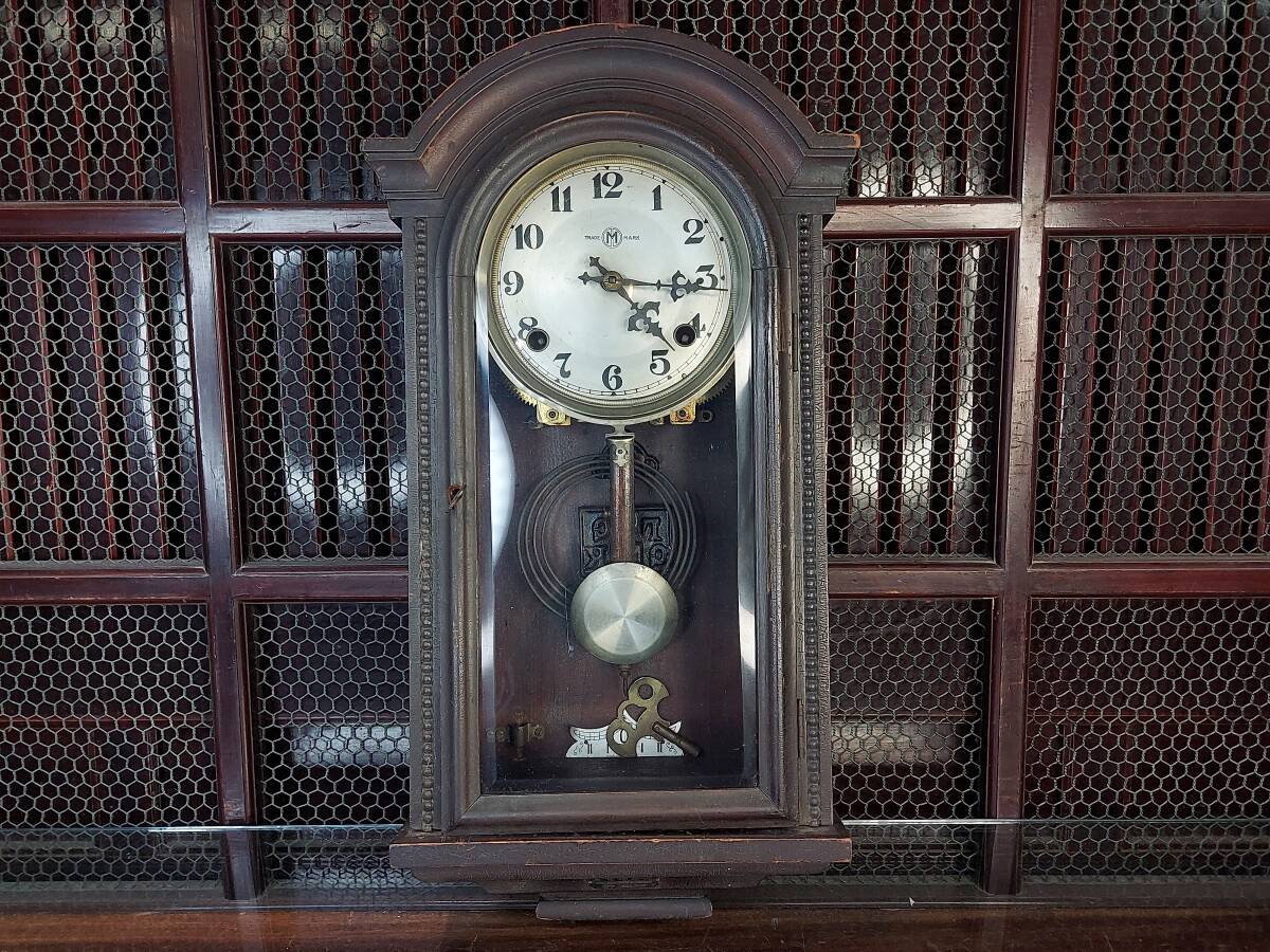 - M02-1012 アンティーク 掛時計 柱時計 古時計 ゼンマイ式 振り子時計 明治時計 不具合あり