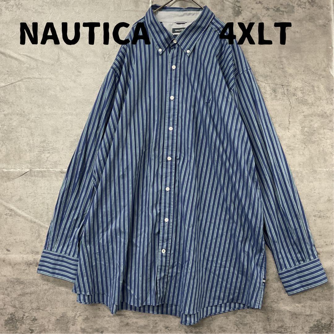 - ノーティカ USA古着 ストライプ柄 長袖シャツ 青×緑 人気定番【6116】