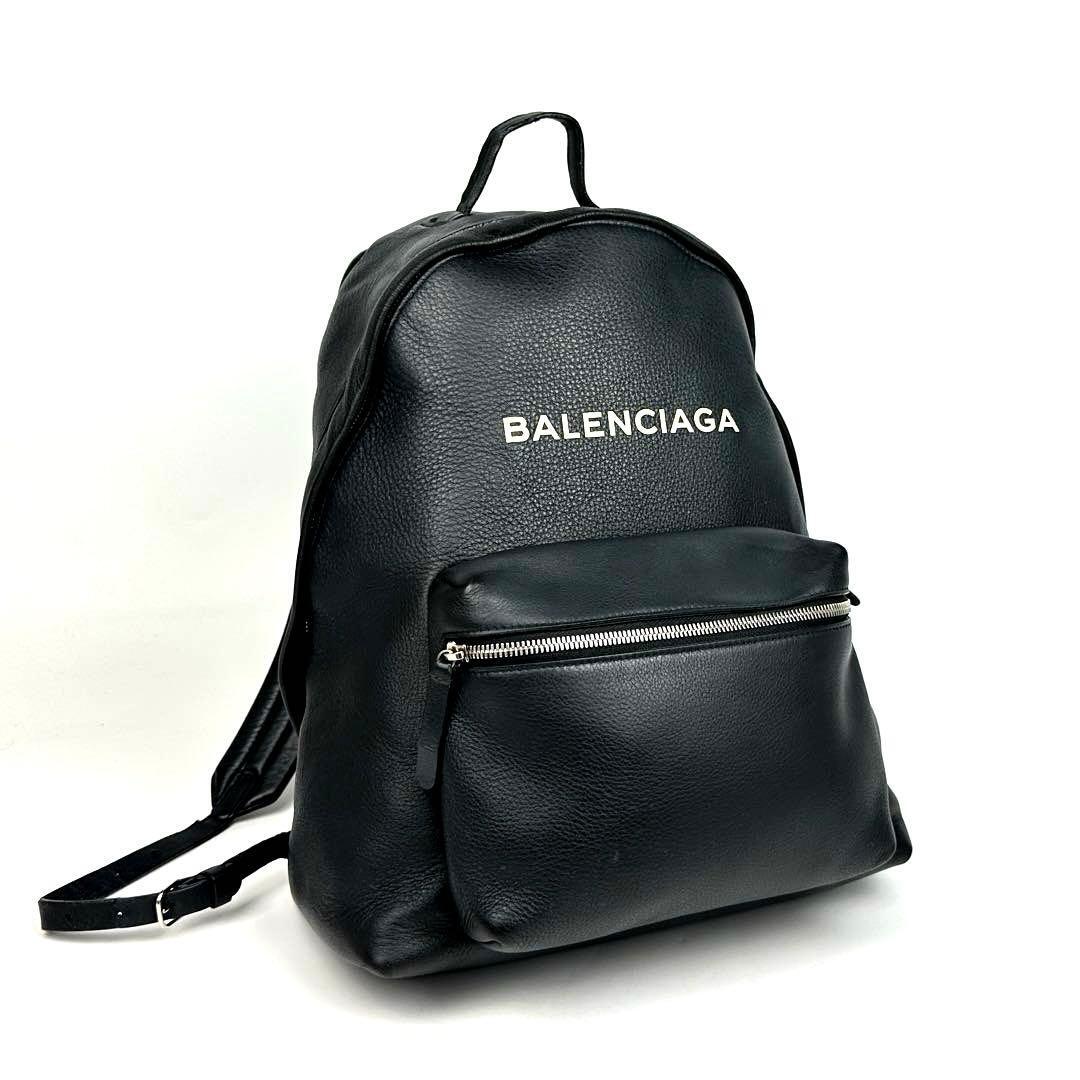 - 定番■BALENCIAGA バレンシアガ リュック エブリデイ ブランドロゴ バックパック シボ革 レザー 黒 ブラック 男女兼用 フォーマル A4収納可