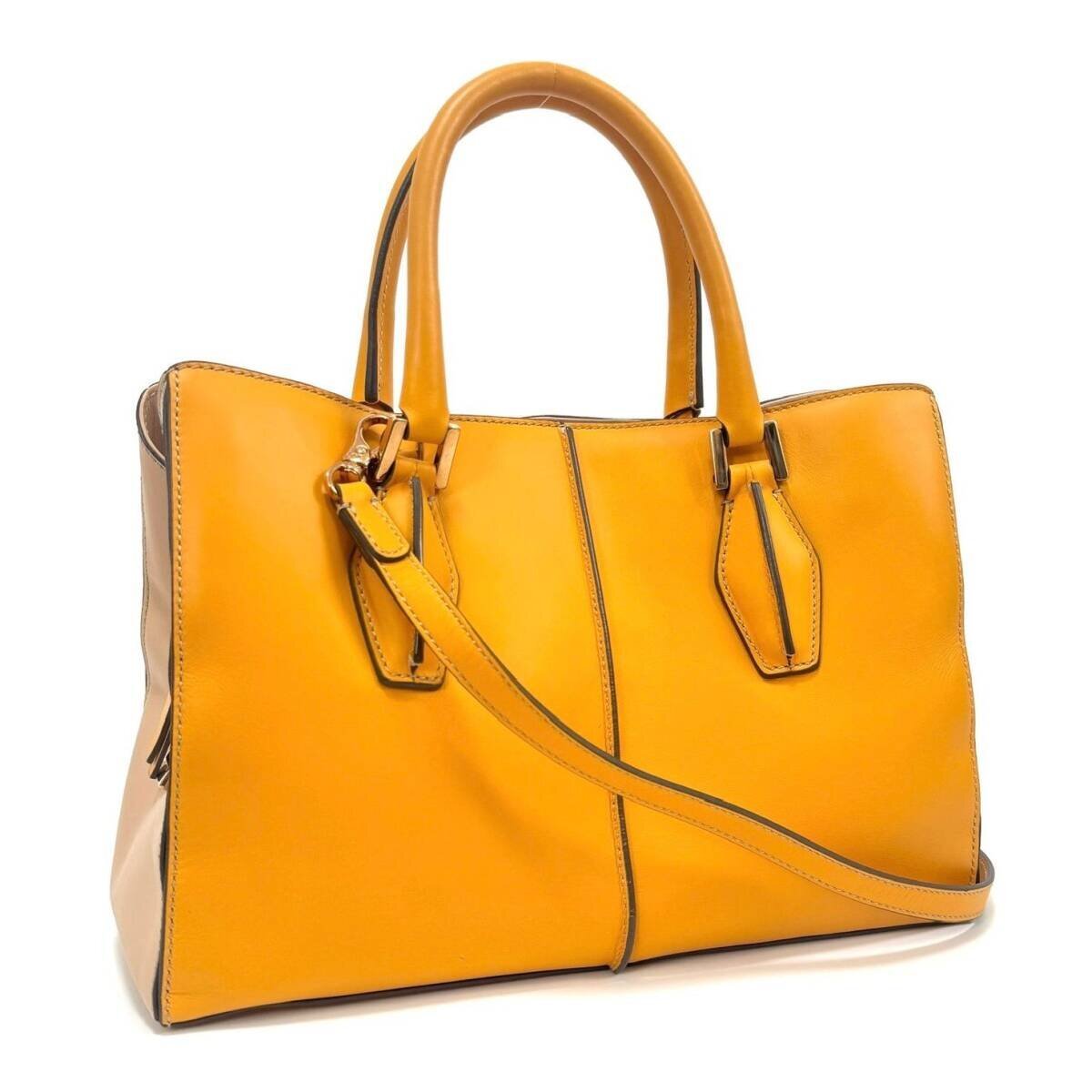 > トッズ Dキューブ 2way ハンドバッグ トートバッグ ショルダーバッグ 肩掛け鞄 斜め掛 イエロー ベージュ 黄色 レザー 本革 スクエア TOD'S