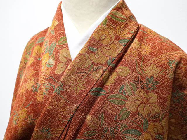 > 《京都一輝堂》【着物】 紬 古典花文 身丈約164cm 裄丈約64cm 24z-2835