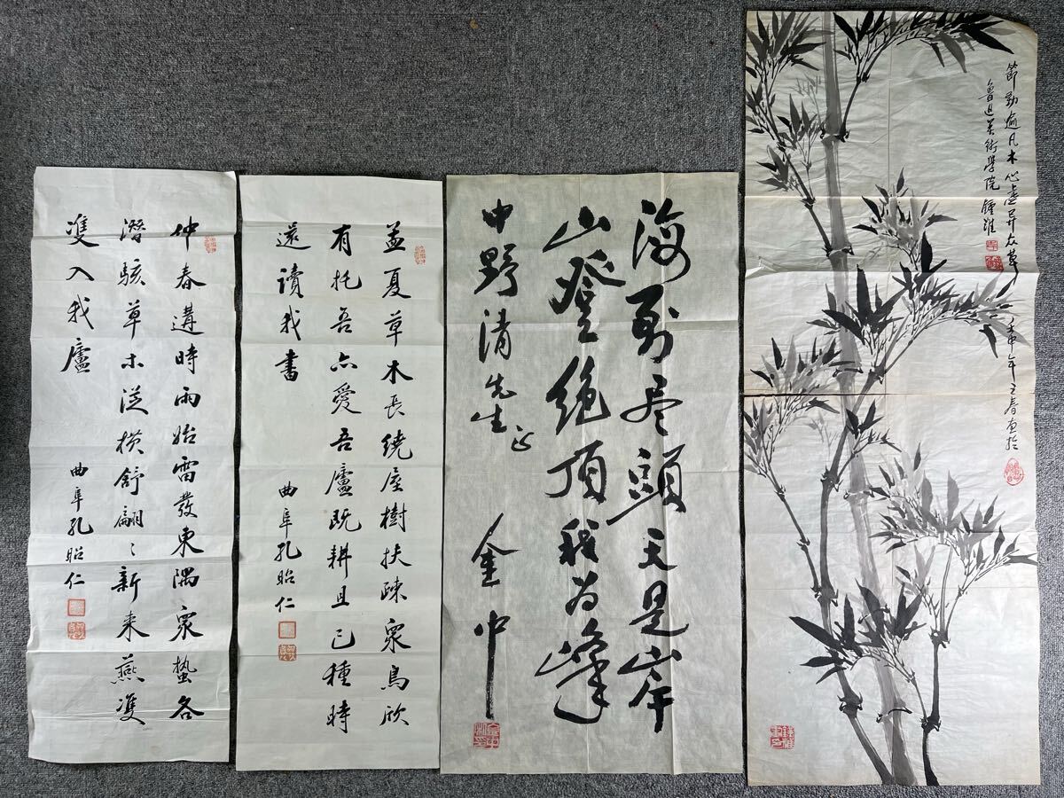 - 孔昭仁 金中 李鍾淮 書画まくり4紙一括、肉筆紙本真作、書道絵画、和本唐本中国