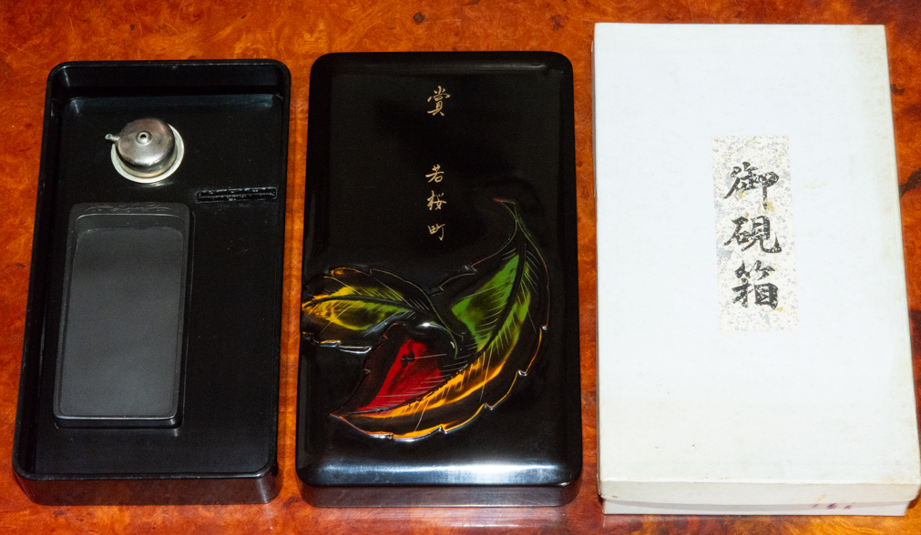 - 明治百年記念論文応募 賞 硯箱 硯 水滴 漆器 書道具 文房四宝 古硯
