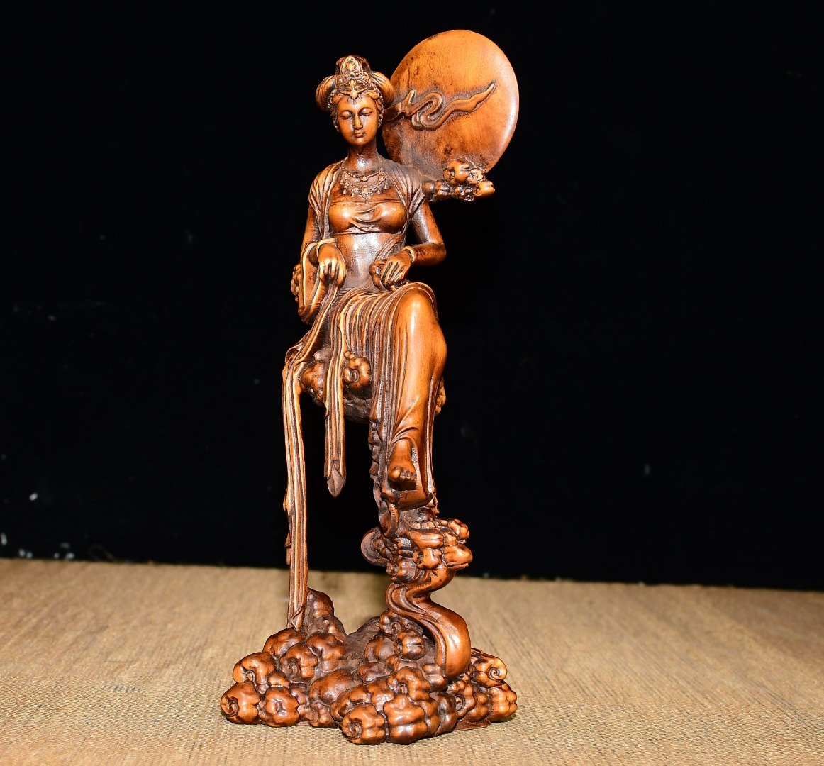- 『館蔵珍品 黄楊木製 細密彫 嫦娥 置物 賞物』稀少珍蔵品 古賞物 貴重物品 収蔵品 中国古美術 時代物 古董品