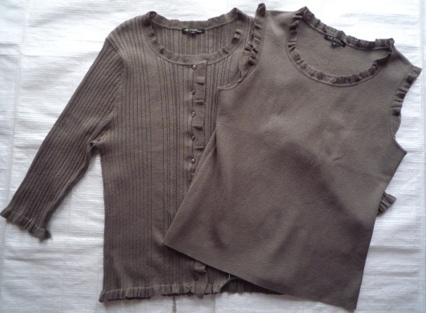 > 23区◆ツインニットアンサンブル★7分袖カーディガンとノースリーブニット★ 46★15号~17号くらい★大きいサイズ★こげ茶