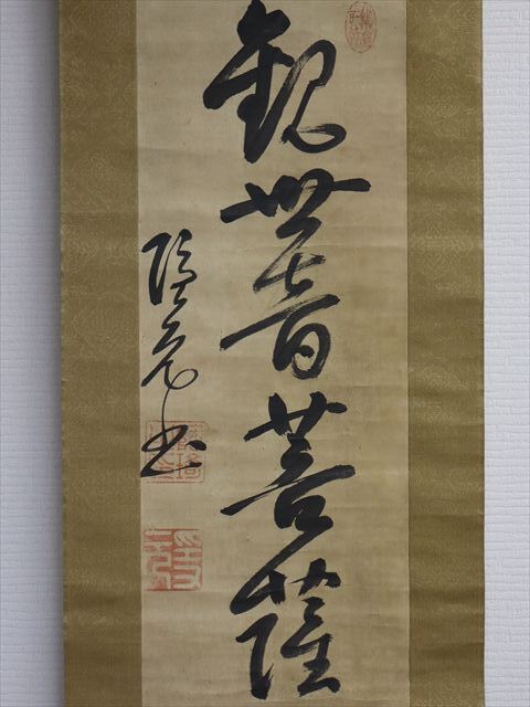 - ★隠元隆琦 一行書 観世音菩薩 黄檗宗 渡来禅僧 「真作」宇治万福寺開山 福建省 掛軸