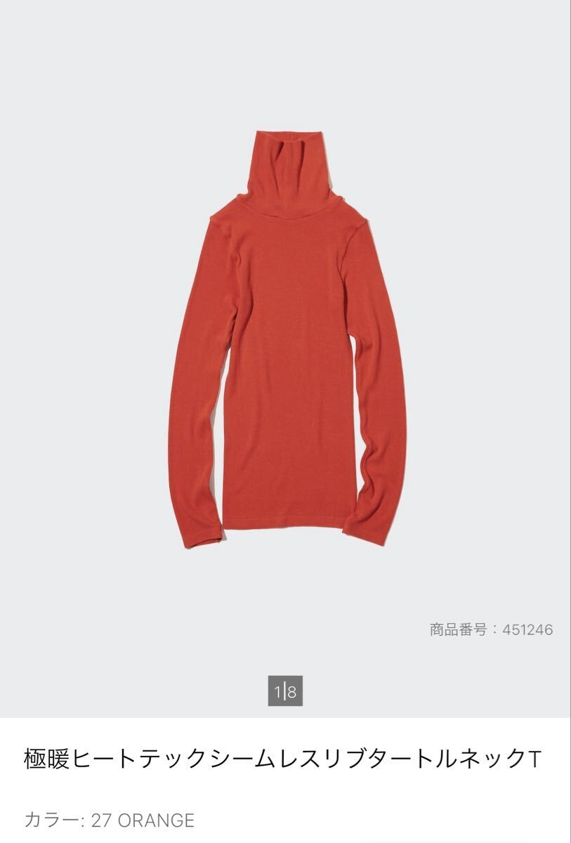 > ★極暖ヒートテックシームレスリブタートルネックT ユニクロ UNIQLO EXTRA エクストラ オレンジ XL