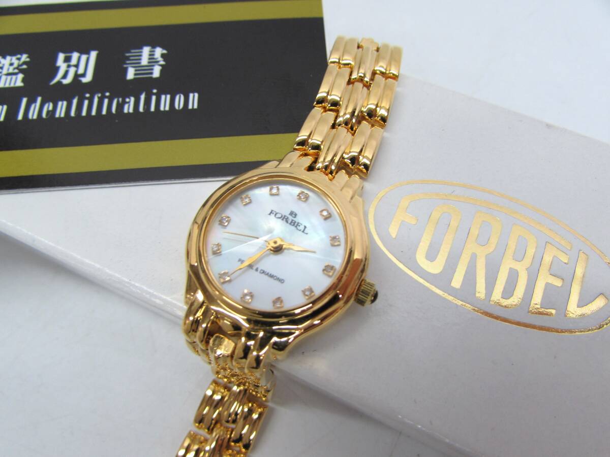 - 極美品 動作品 フォーベル FORBEL FB-1051L シェル文字盤 12Pダイヤ カットガラス 腕時計 レディース クォーツ 鑑別書付き