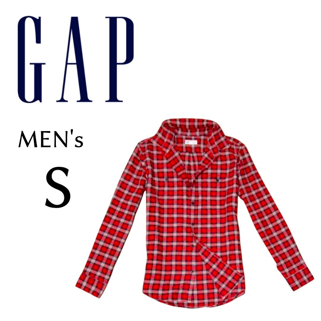 - 送料込み メンズSサイズ GAP ギャップ 長袖フレンチネルシャツ 赤色チェック柄