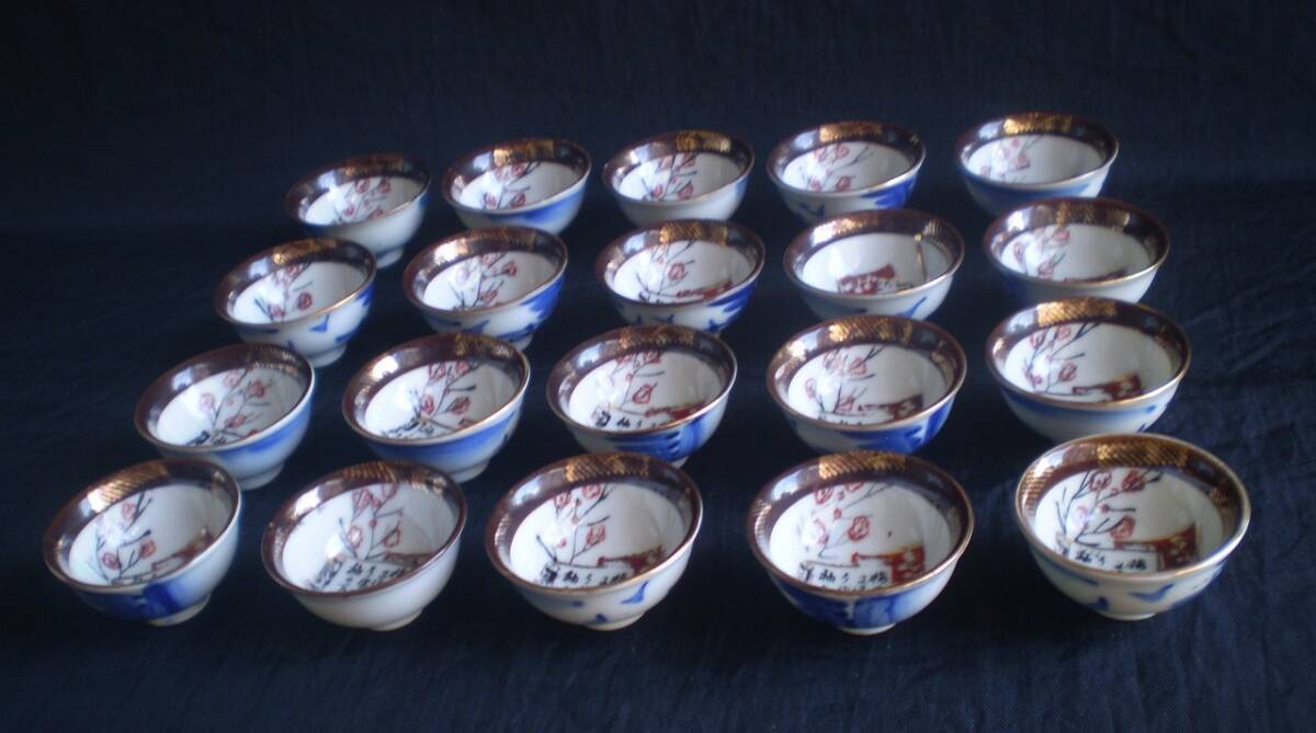- 九谷焼 盃 ぐい呑み まとめて20点 梅図/俳句/金縁/金彩 酒器/日本酒 日本みやげ 居酒屋②