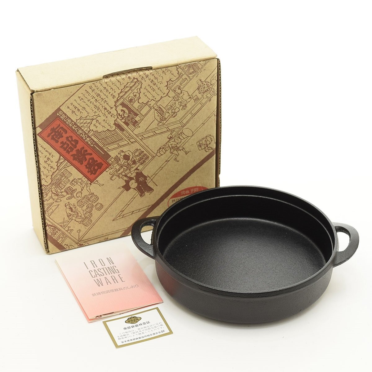 > ◎551467 未使用品 南部鉄器 すき焼き鍋 17cm 池永鉄工 鉄製 すき鍋 卓上鍋 新品 両手鍋 一人用