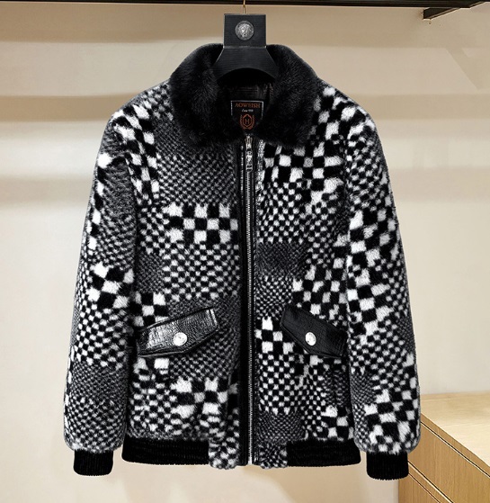 > ファーコート※新入荷 メンズ ジャケット ブルゾン チェック柄 厚手 ゆったり 毛皮 フェイクファー 紳士 秋冬 サイズ選択可 /XL