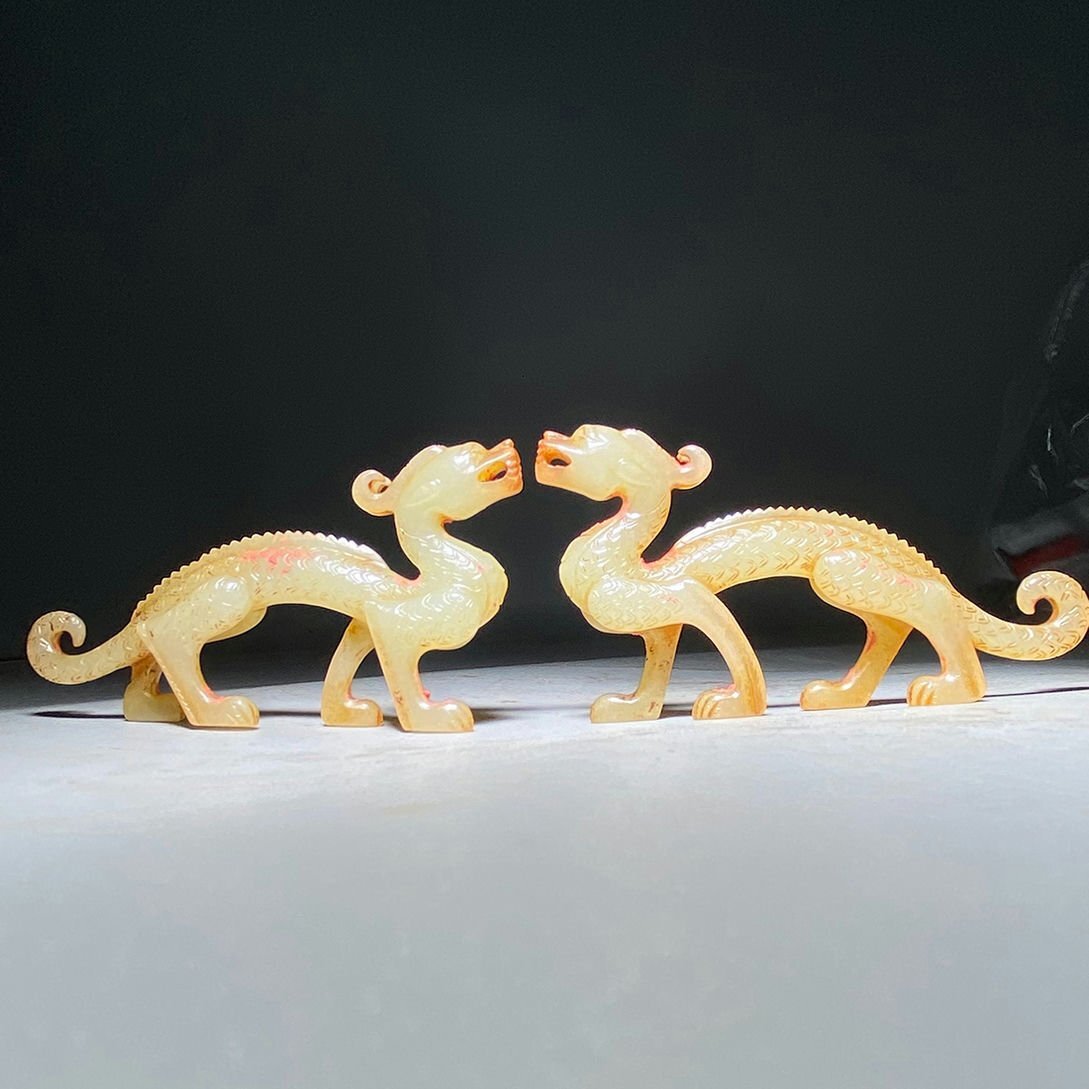 - ▼渡鶴羽▼G5496漢時代 和田玉 玉龍 時代古玉細密彫 細密細工★古置物★古賞物★古擺件★蒐集家放出★唐物