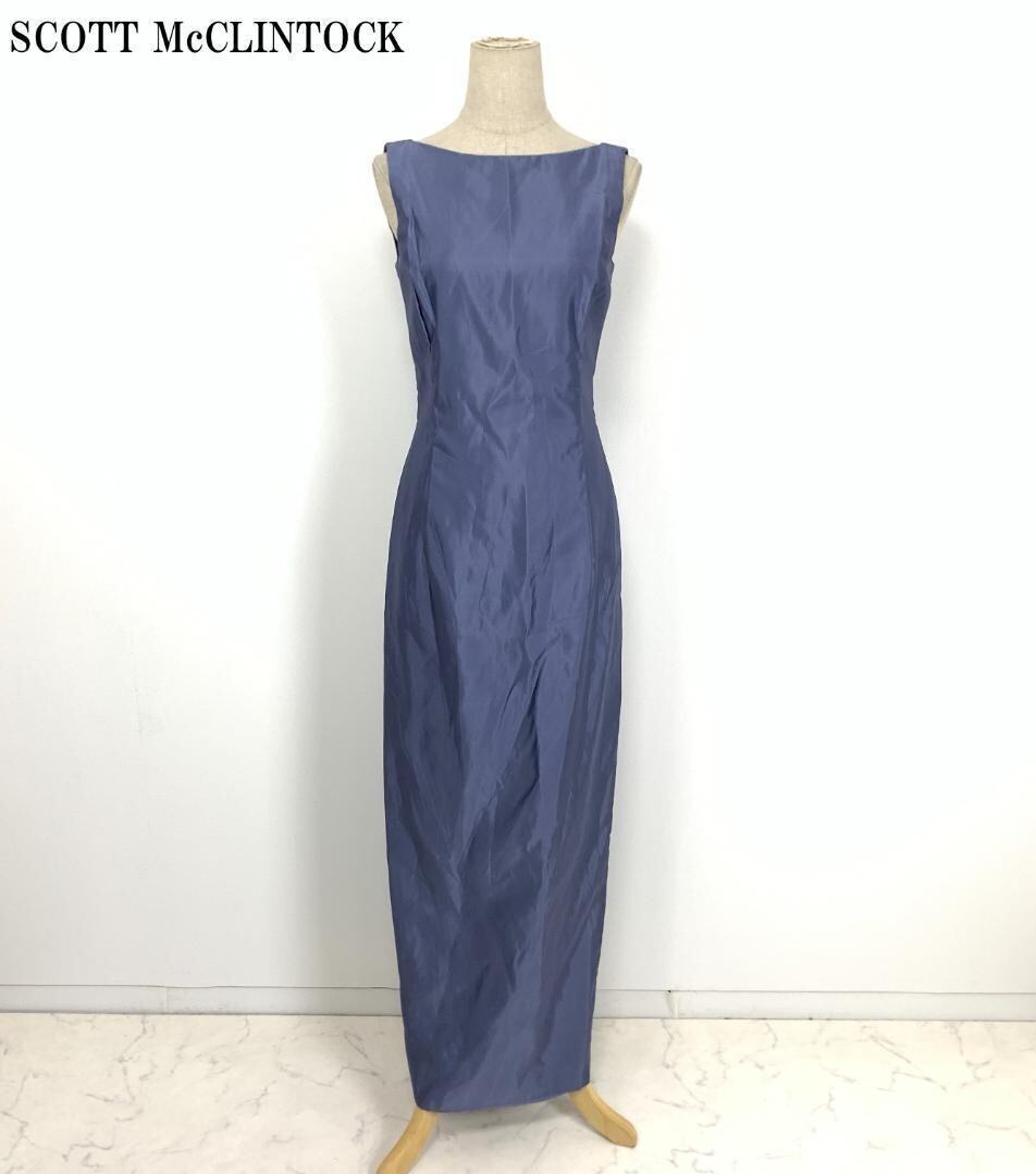 - LA7401 スコットマクリントック SCOTT McCLINTOCK マキシ丈ワンピース タイト感 ポリエステル ノースリーブ ロングドレス ブルー 6