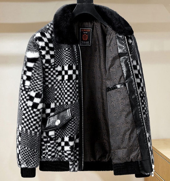 > ファーコート※新入荷 メンズ ジャケット ブルゾン チェック柄 厚手 ゆったり 毛皮 フェイクファー 紳士 秋冬 サイズ選択可 /2XL