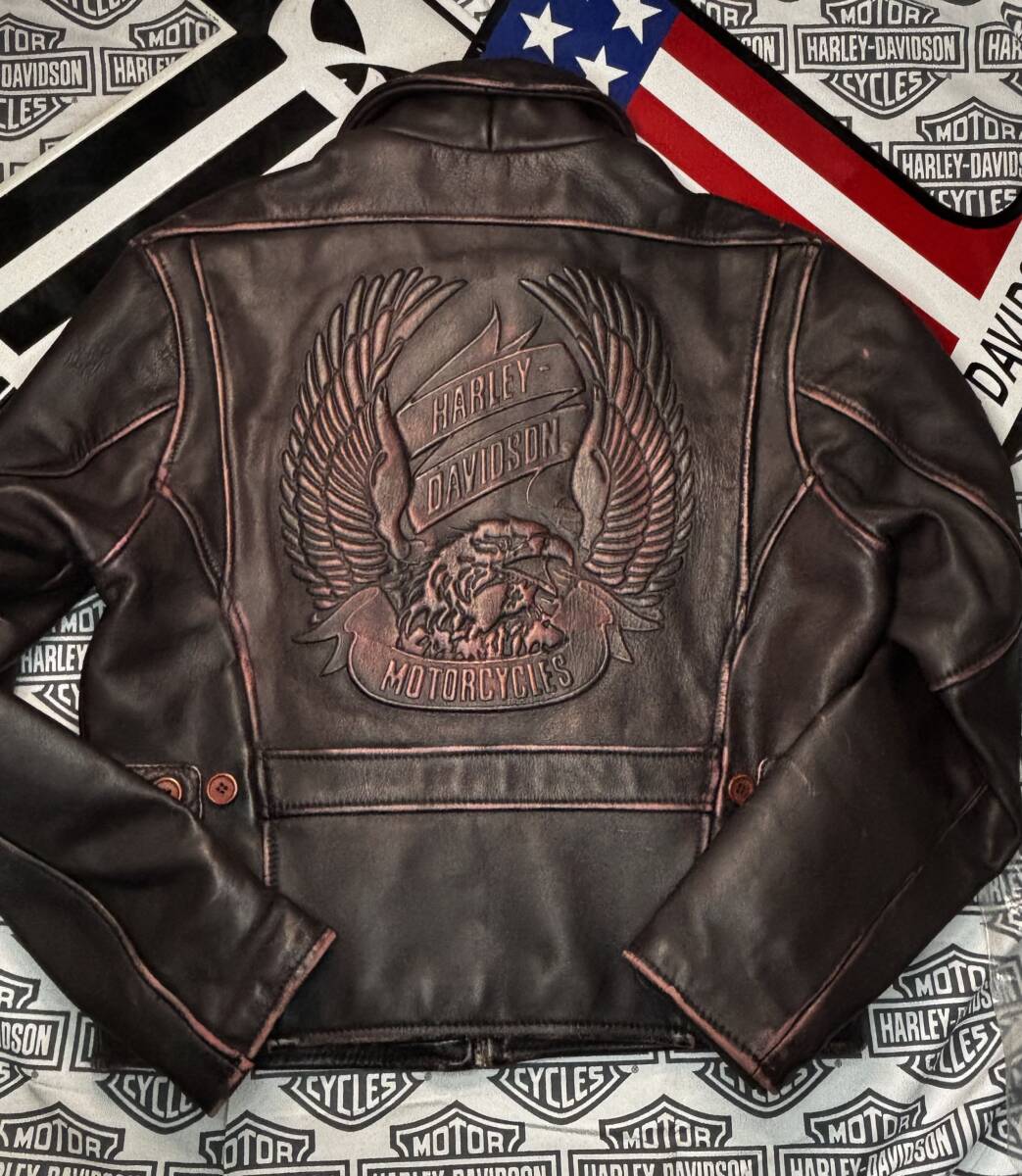 > ★H-D★ハーレーダビッドソン★3D立体エンボスエンブレム★本革製ジャケット★見事なダメージ加工の限定レアモデル極厚柔カウハイドレザー