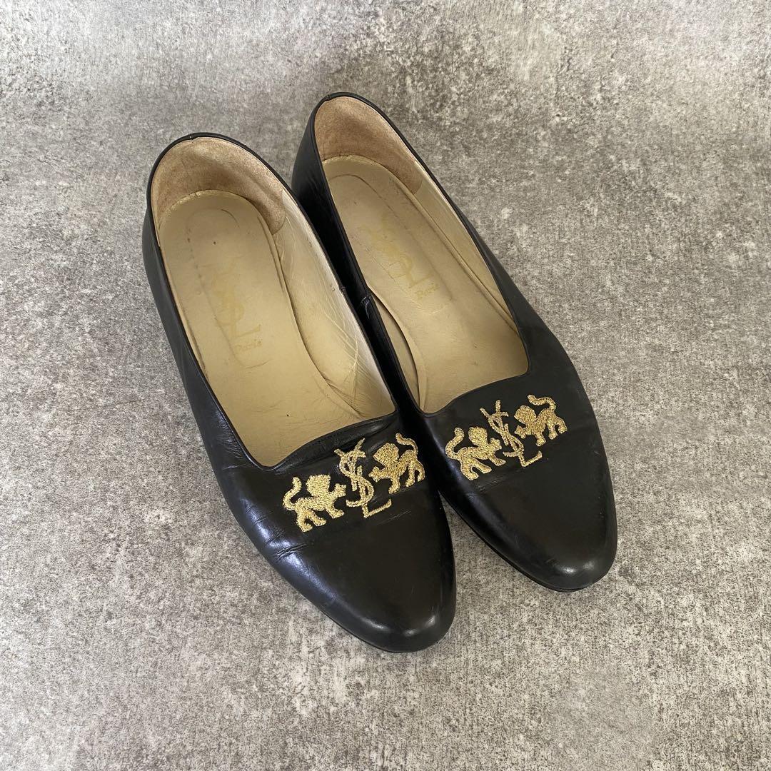 - イブサンローラン パンプス フラットシューズ 刺繍 レザー 黒 24cm