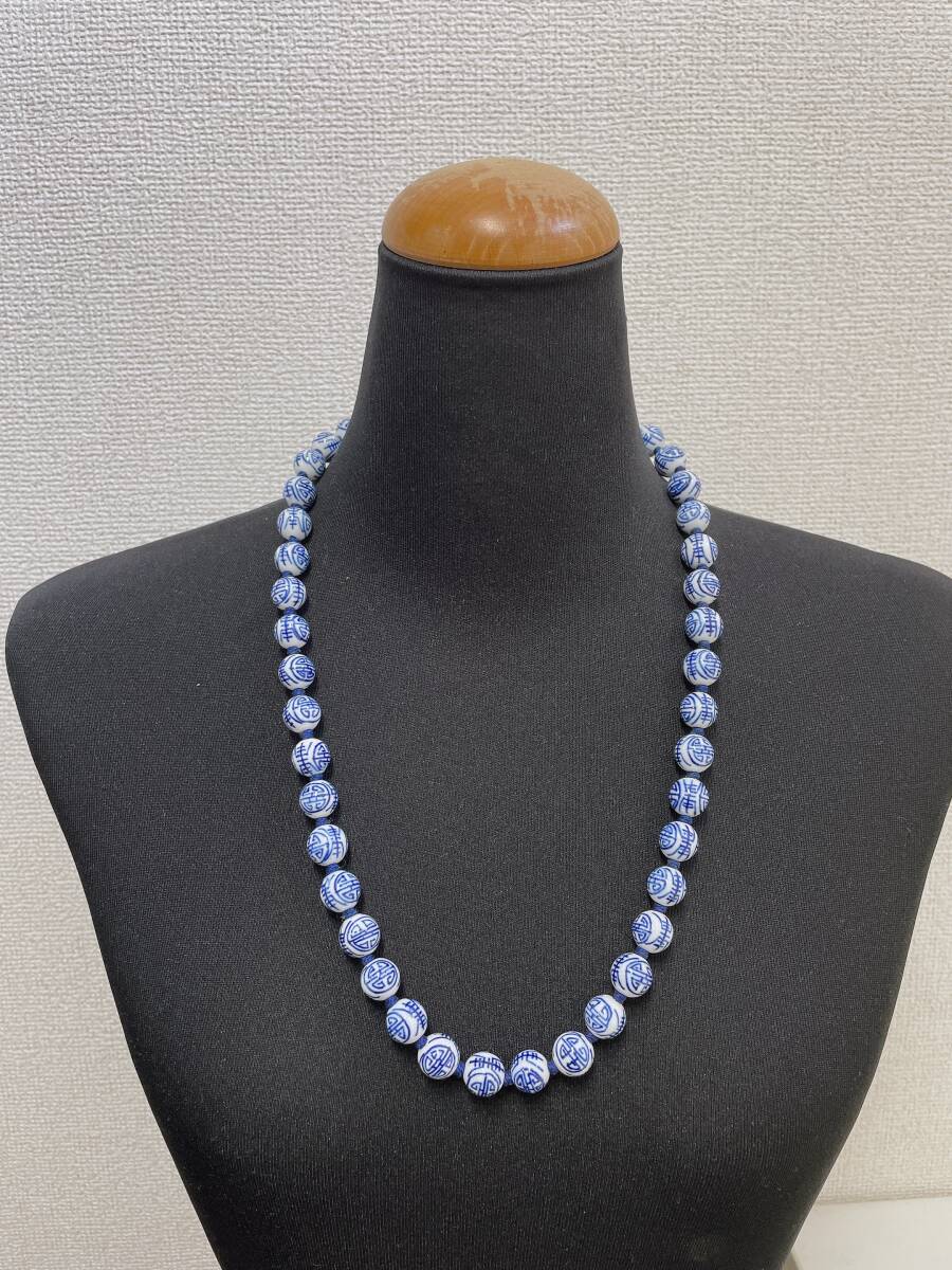 - 【~唐風 ネックレス~】チベット/ビーズ/念珠/数珠/陶器/ 仏教/アクセサリー/ペンダント/A79-222