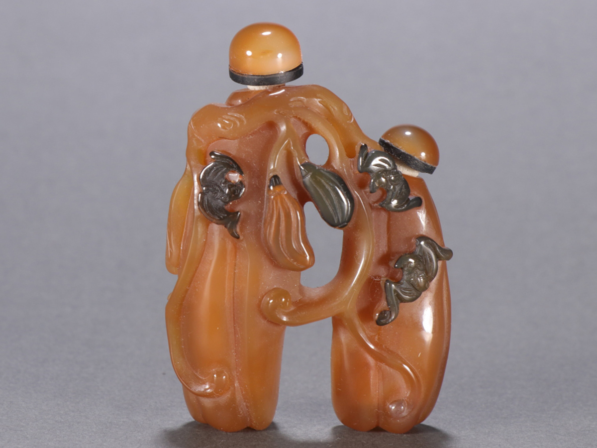 - ▽鴻▽ 清朝時代 瑪瑙彫 福瓜双聯鼻煙壺 時代物 中国古美術 骨董品
