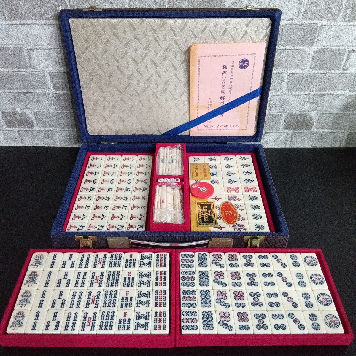 - HA-575/MVC/MIZUNO VICTOR CARTA/麻雀牌セット/背竹/点棒/麻雀パイ/昭和レトロ/ケース入り/サイコロ/現状品/保管品
