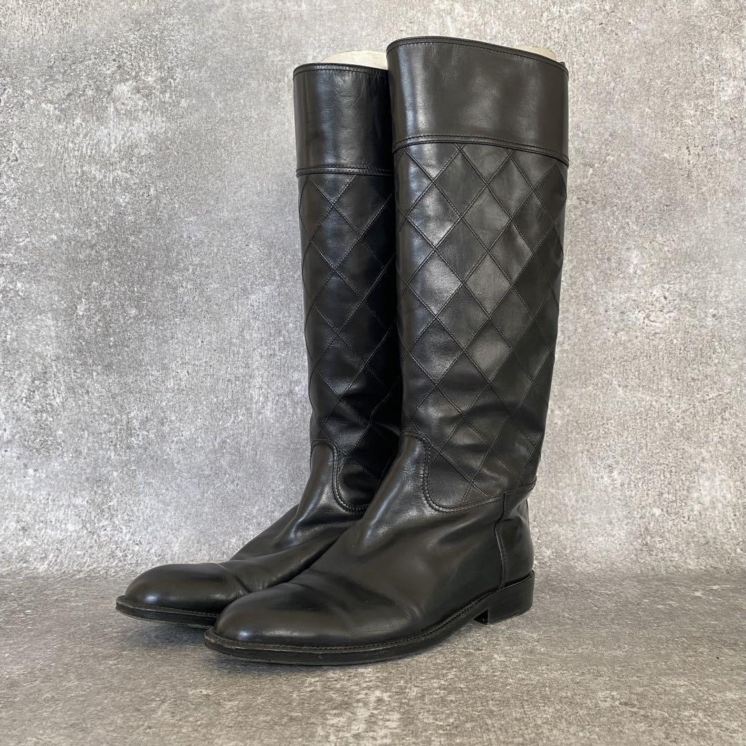 - CHANEL シャネル ロング ブーツ マトラッセ キルティング 黒 23cm
