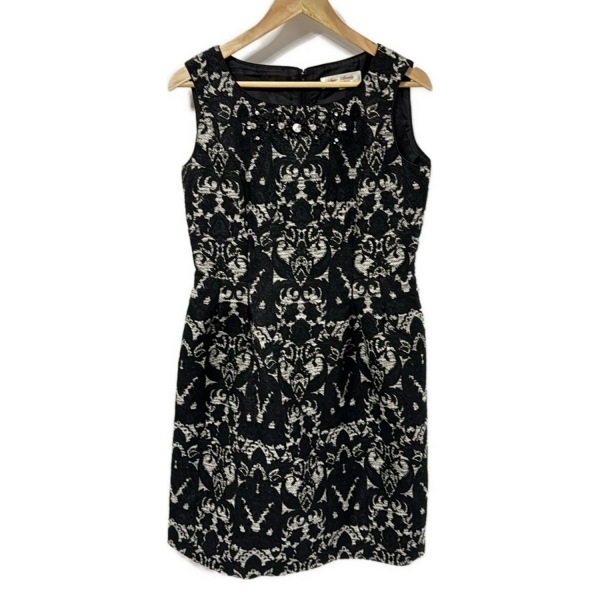 > スーパービューティー SUPERBEAUTY サイズ42 L - 黒×白 レディース クルーネック/ノースリーブ/ひざ丈/花柄/ビジュー 美品 ワンピース