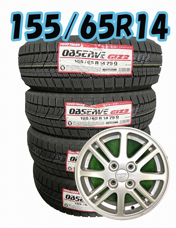 - 2025年製 155/65R14 75Q TOYO OBSERVE GIZ2 新品 スタッドレス/中古アルミホイール 4本【組み付け無料バランス込み】TZ-5