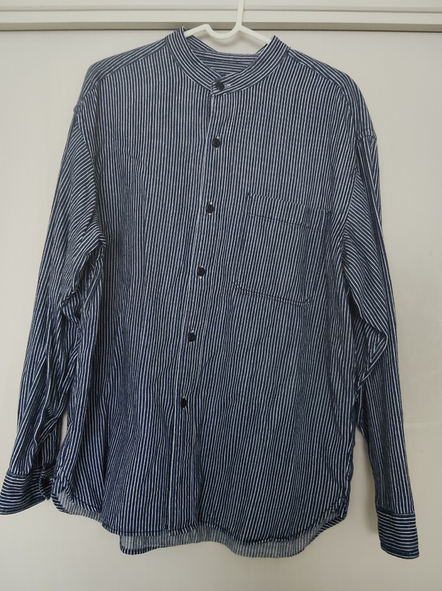- ユニクロ ヒッコリーオーバーサイズ スタンドカラー シャツ 長袖 ブルー ストライプ 綿100% サイズM ¥2,990購入