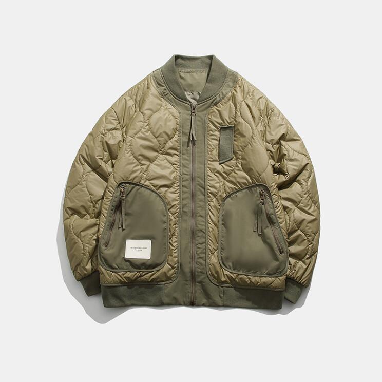 - 新作人気品キルティング 中綿フライトジャケット 羽織 ビッグポケット軽い メンズ 防寒新品ライトアウタークロ 緑 L