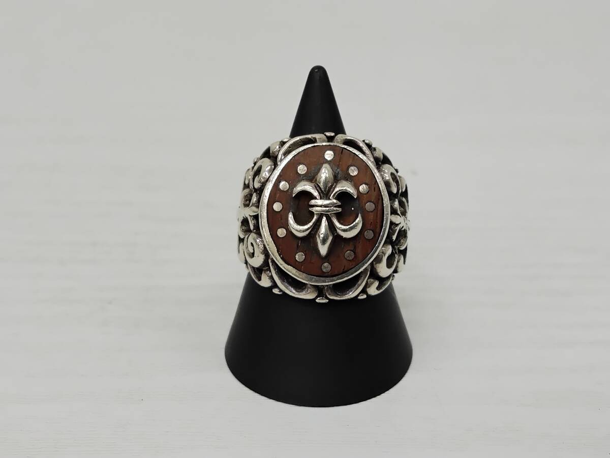 - 925 スターリングシルバー リング メンズ WS?刻印あり 透かし彫り 木 ユリ 17号 保管品 現状品 中古