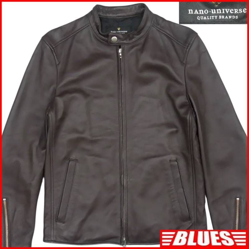 - 即決★nano universe★メンズ S レザーライダースジャケット ナノユニバース 羊革 ラムレザー 本革 立襟 シングル 本皮 ツーリング