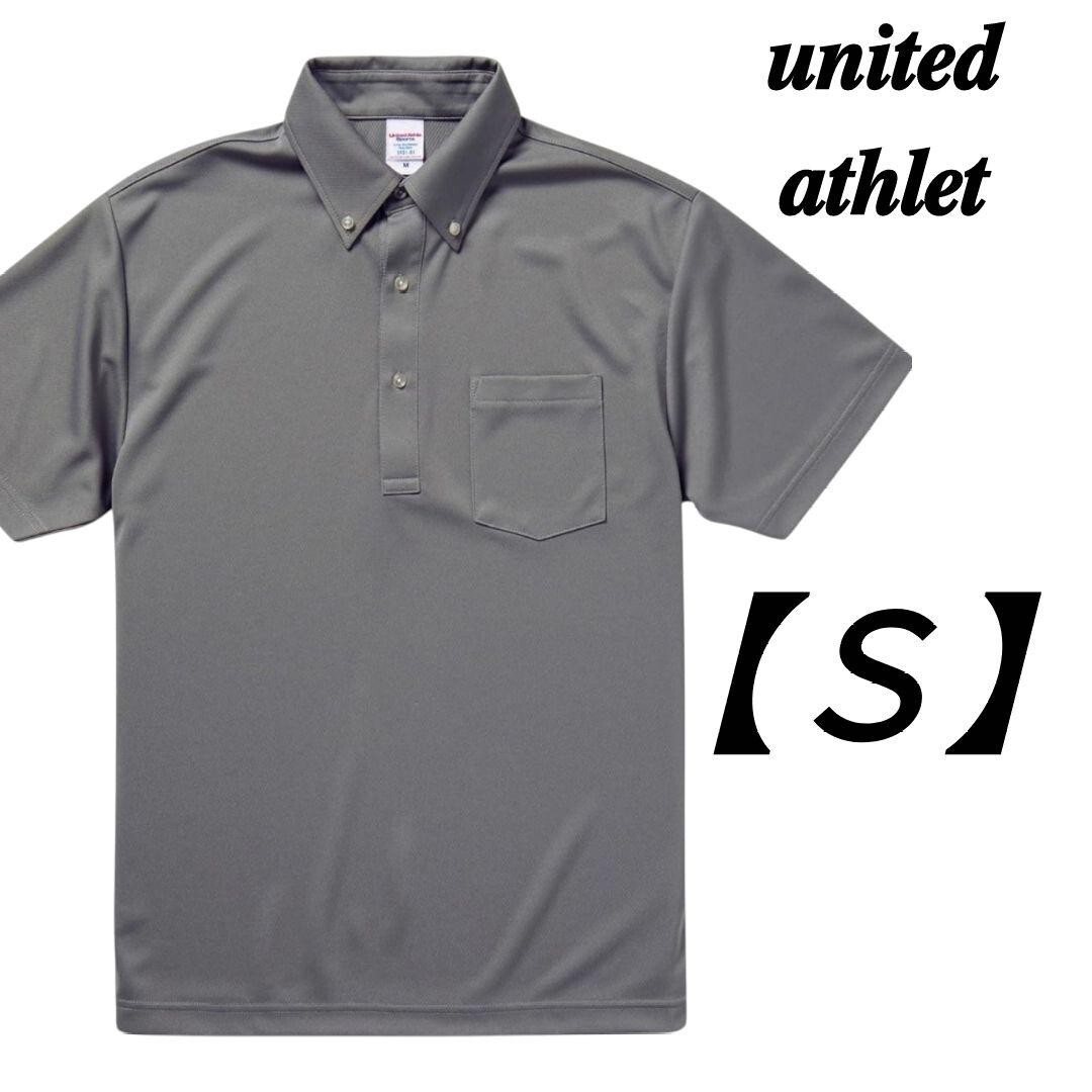 - 【訳アリ】ポロシャツ 半袖 【S】 ドライアスレチック ボタンダウン ポケット付 グレー 吸水 速乾 無地