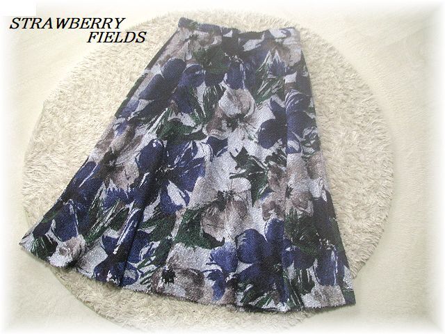 > 送料無料*ストロベリーフィールズ/STRAWBERRY FIELDS*【秋冬アイテム】総柄起毛素材フレアースカート/ポリエステル/ウエスト背面ゴム仕様