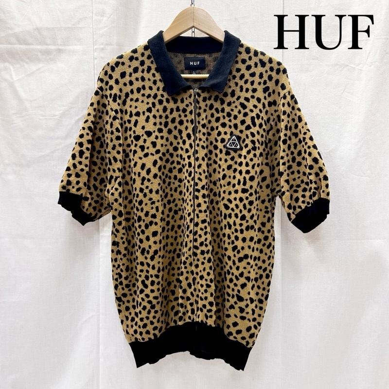 - ハフ INSTINCTBOWLINGSWEATER ボウリングセーター 半袖ニット アップリケバッジ フルジップファスナー KN00494 L
