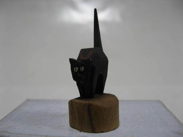 - ★昭和初期 『可愛いミニチュアの黒猫人形』 アールデコ動物一刀彫木工芸竹細工レトロ古民具縁起物★