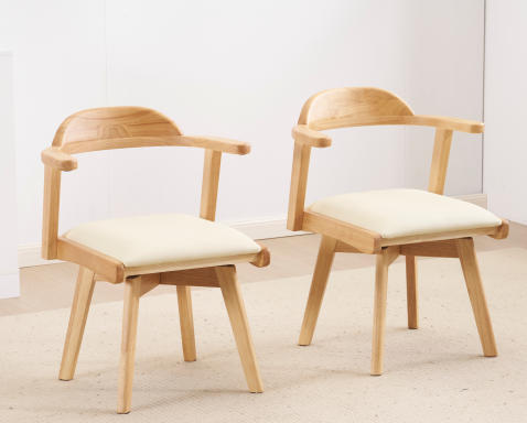 - 【2脚】ダイニングチェア 2脚セット お掃除ロボット対応 肘付き ウィンザーチェア 天然木無垢材 オーク ハーフアーム 頑丈 イス 食 KU434
