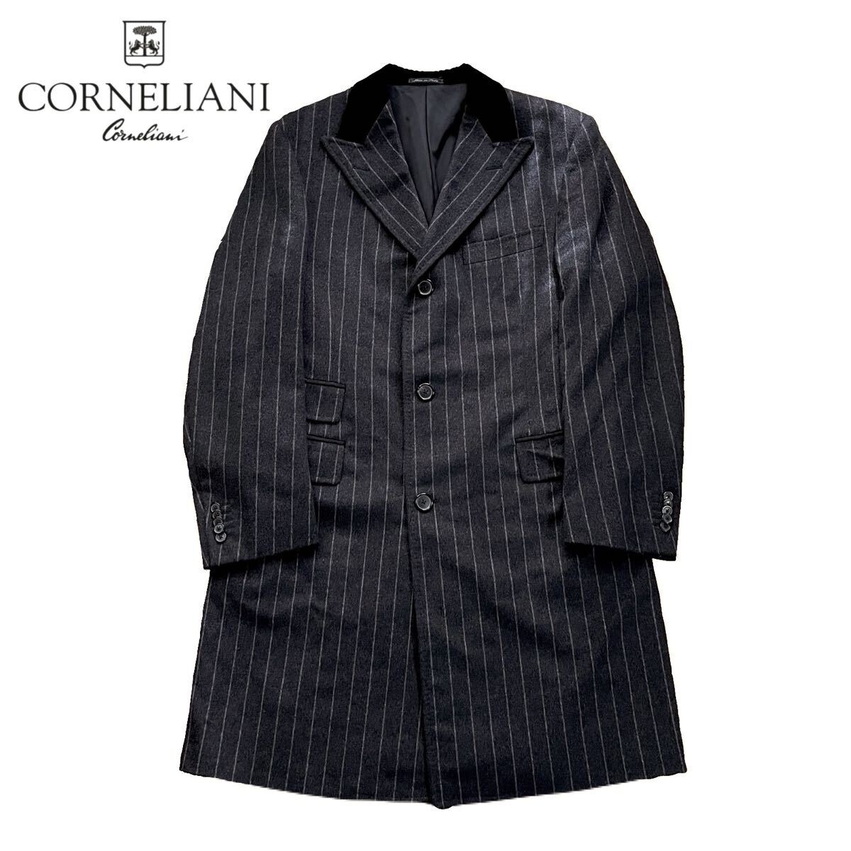 > CORNELIANI コルネリアーニ カシミヤ カシミア 100% コート ロング ストライプ柄 グレー ブラック 純正ハンガー 50 8 R メンズ イタリア製